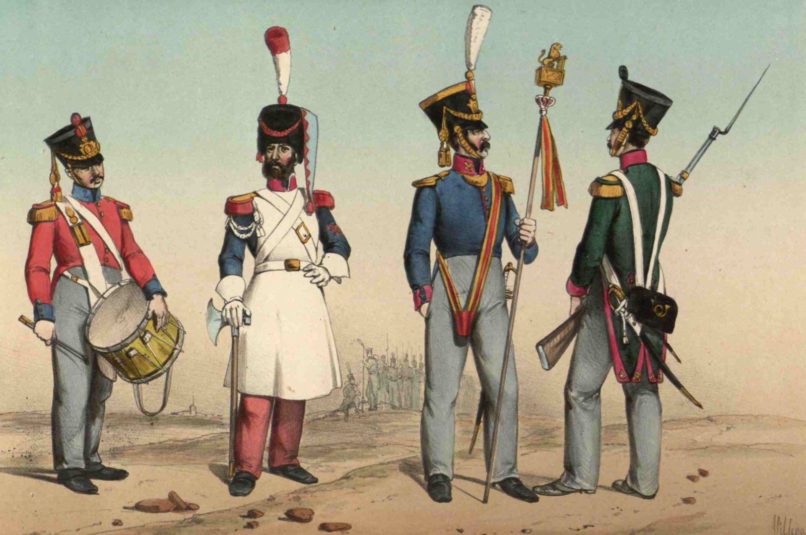 La clase de Sargentos de aquella guarnición, el del destacamento de Artillería, el del regimiento de Pavía José Molina que se incorporó voluntario con dos soldados y un cabo que se hallaban de partida en dicha plaza, y los demás cabos y tropa presentes en ella son dignos del mayor elogio por su decisión absoluta al establecimiento de nuestra sabia Constitución y por el ardor que demostraron en arrostrar cuantos peligros se ofreciesen para conseguirlo, y en particular el sargento segundo de Artillería Antonio Bros, que hallándose convaleciente de una grave enfermedad fue de los que más cooperaron a aquel efecto, mereciendo toda la confianza de los buenos Patriotas.